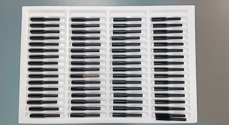 2、組裝環(huán)節(jié):在組裝環(huán)節(jié),生產(chǎn)線通過(guò)機(jī)械臂、傳送帶、自動(dòng)定位系統(tǒng)等自動(dòng)化設(shè)備,將筆尖,筆帽、、筆桿、彈簧、立柱等零部件進(jìn)行組裝,完成眼線筆的制造。