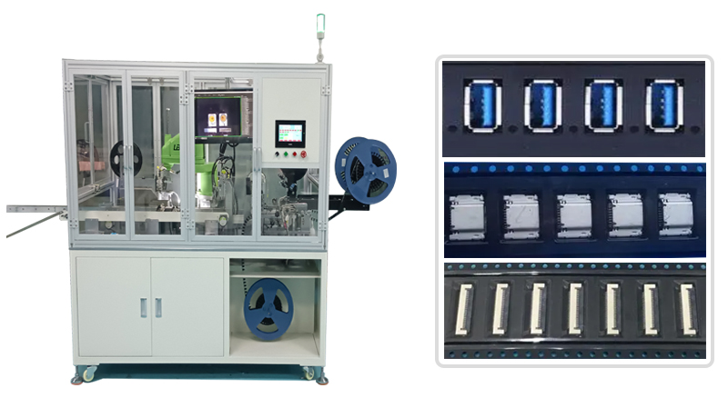 2、多功能:連接器載帶包裝機能夠適應(yīng)多種連接器類型和規(guī)格,實現(xiàn)自動化生產(chǎn)和包裝。